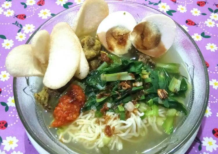 - Sajikan mie soto tulang ayam bersama sambal dan bahan pelengkap..