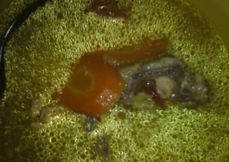 - Rebus air hingga mendidih (secukupnya), masukan tulangan, daging dan sayur sembari menunggu bahan empuk, haluskan bumbu lalu tumis hingga wangi, masukan daun jeruk tumis bebarengan tambahkam sedikit air (supaya tidak gosong) dan matikan kompor.